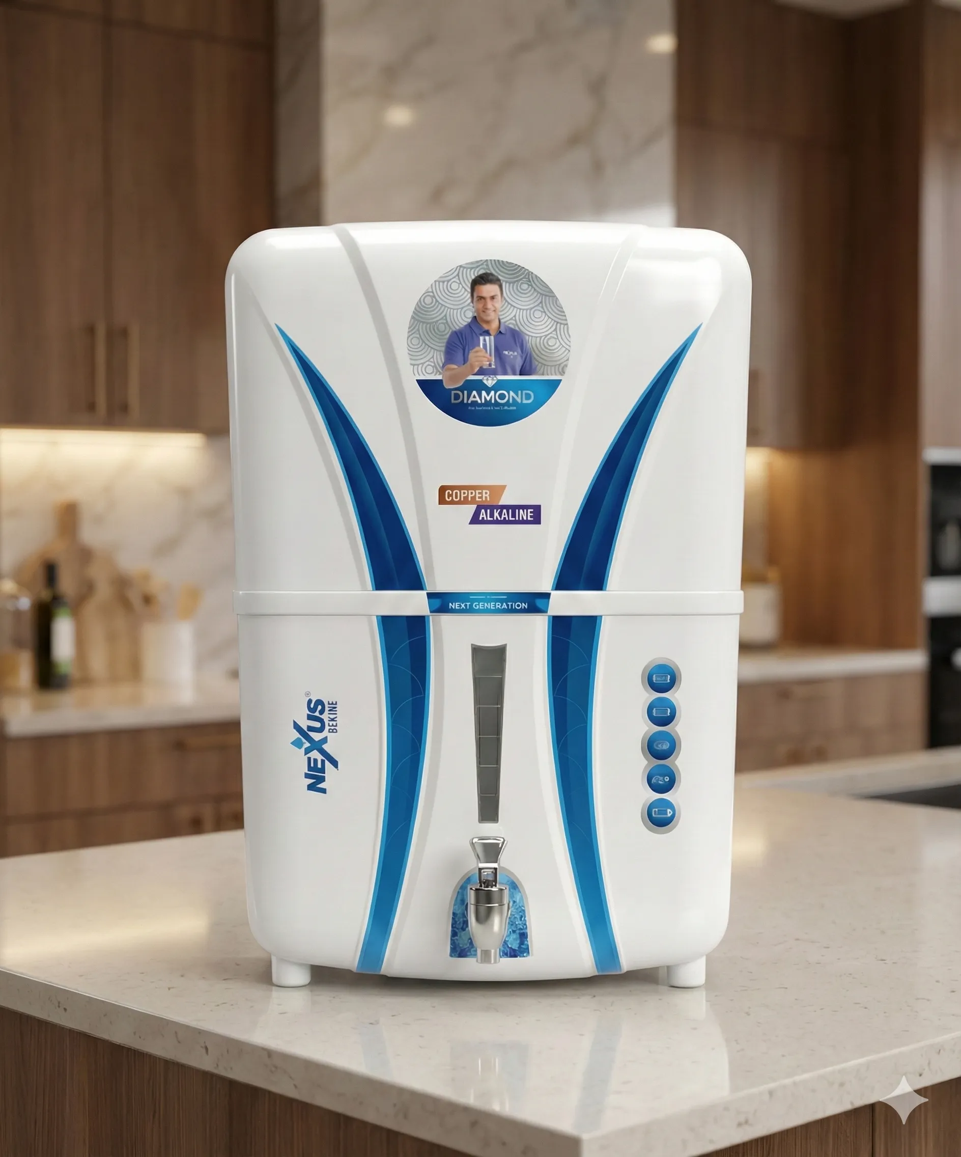 7-Stage Advanced Purification: The Diamond RO leaves nothing to chance. It employs a comprehensive RO + UV + UF filtration process to remove dissolved impurities, bacteria, and viruses. But it doesn’t stop at purification—it enhances your water with Zinc Copper Alkaline technology. This actively infuses essential minerals and balances the pH level, providing water that boosts immunity and promotes better health.