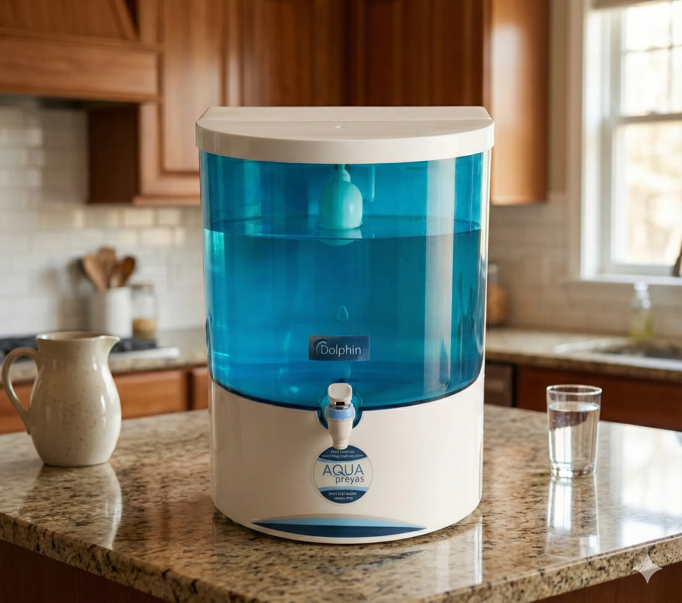 Classic Design & Large Storage: The Dolphin RO features its iconic transparent blue storage tank, allowing you to easily check water levels at a glance. Its high-capacity tank ensures you have plenty of purified water available for the whole family, even during power outages.